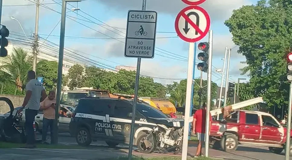 Uma colisão envolvendo uma viatura da Polícia Civil e um carro de passeio foi registrada na tarde desta segunda-feira (9), em um cruzamento da Avenida Durval de Góes Monteiro, na parte alta de Maceió. A viatura estava em ronda quando ocorreu o acidente.
