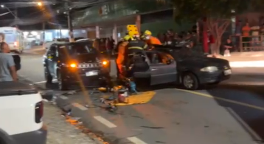 Colisão entre carros deixa duas pessoas feridas na Serraria; mulher fica presa às ferragens