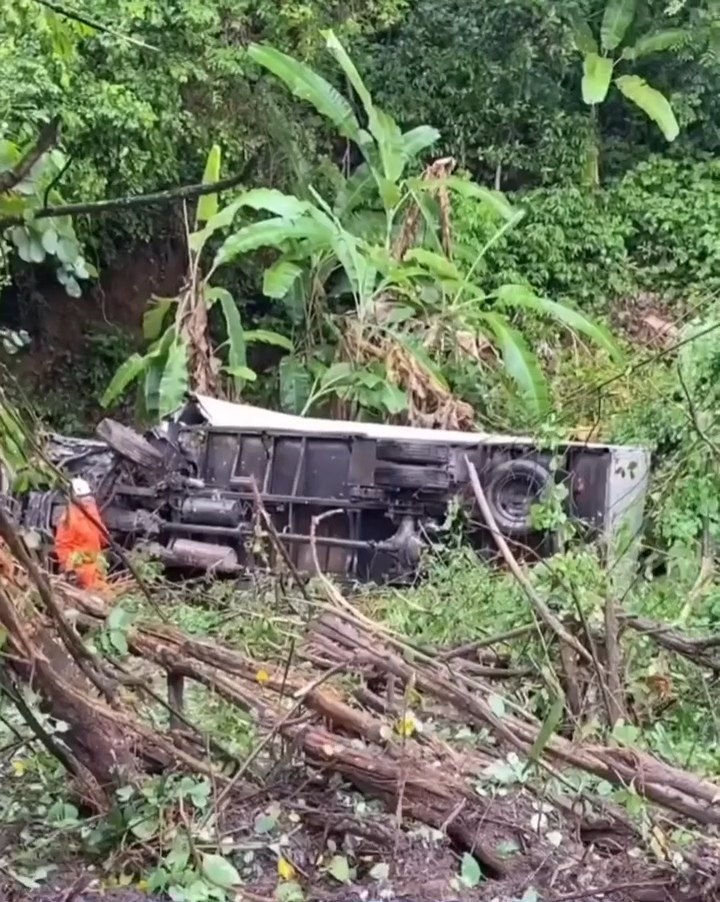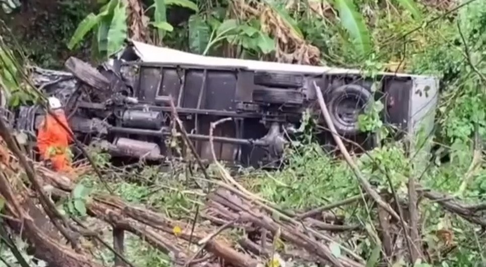 Caminhão cai em ribanceira após colisão em Branquinha