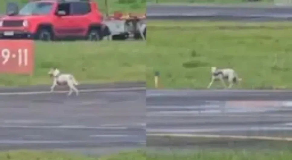 Cachorro invade pista de aeroporto e atrasa pouso de avião