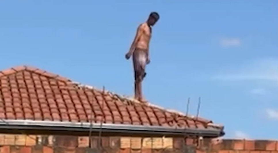 Surto por amor: Homem sobe em telhado atrás da ex e ataca PF com telhas