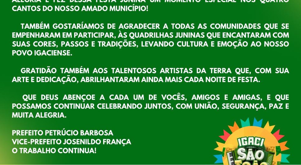 Igaci celebra São João com resgate cultural, segurança e valorização local