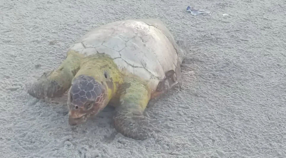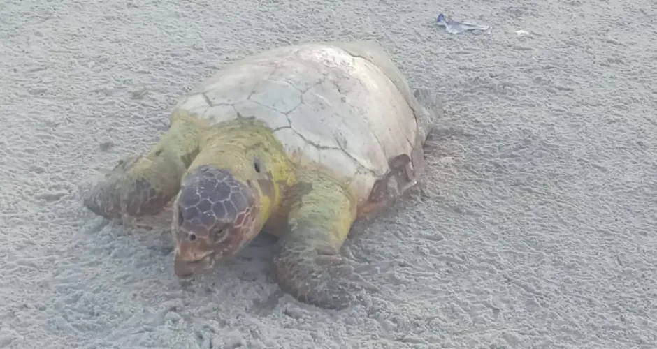 Tartaruga marinha é encontrada morta na praia do Sobral, em Maceió