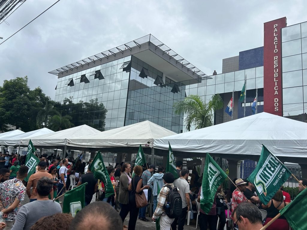 Professores da capital e interior do estado iniciaram uma vigília, nesta terça-feira (08), à porta do Palácio República dos Palmares, em Maceió, a fim de pressionar o governador de Alagoas, Paulo Dantas, a abrir um canal de negociação com o sindicato da categoria. Com uma extensa pauta de reivindicações, os profissionais da Educação Estadual estão em greve desde o dia 1º de julho. Segundo o presidente do Sindicato dos Trabalhadores em Educação de Alagoas (Sinteal), Izael Ribeiro, o movimento terá sequência nesta quarta-feira, com diversas atividades.