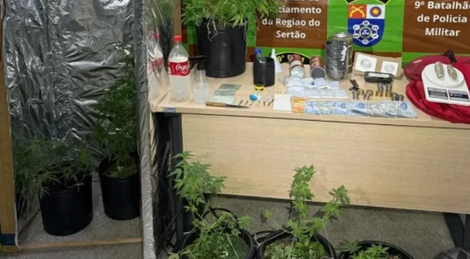 Homem é preso em flagrante com drogas e estufa artesanal de maconha em Delmiro Gouveia