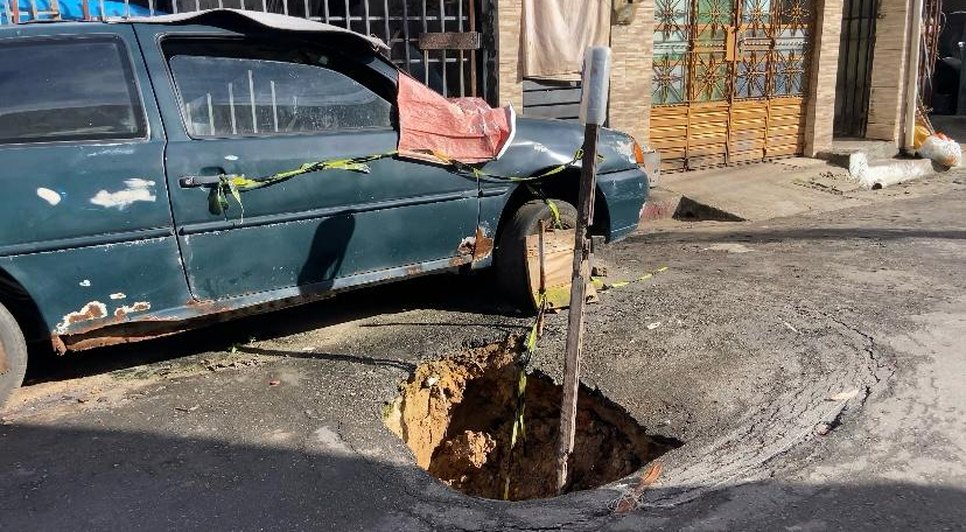 “A Prefeitura já veio algumas vezes e tapou o buraco, mas volta a abrir dias depois. A gente imagina que seja o esgoto vazando por baixo, porque o chão sempre afunda de novo”, contou uma moradora que preferiu não se identificar.