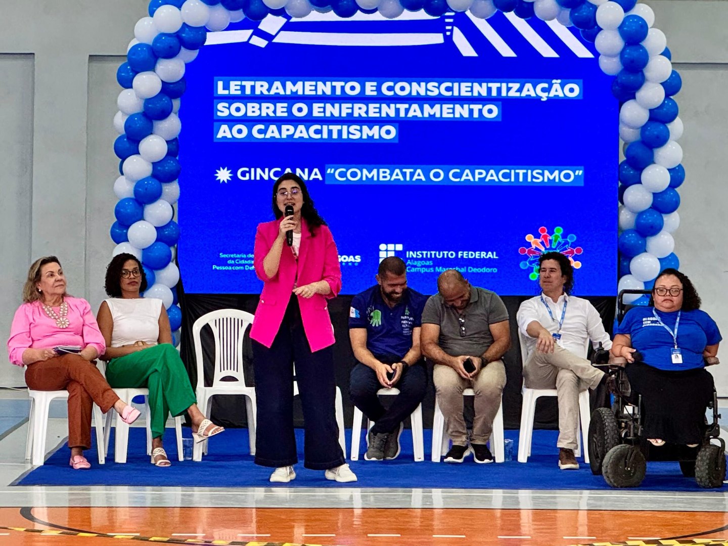 A vereadora por Maceió, Teca Nelma (PT), participou nesta quarta-feira (16) da gincana “Combata o Capacitismo”, realizada no campus do IFAL em Marechal Deodoro. A atividade foi promovida pela Secretaria de Estado da Pessoa com Deficiência (Secdef), dentro do programa Alagoas Mais Inclusiva, e reuniu mais de 300 estudantes em uma tarde de diálogo, conscientização e interação sobre os direitos das pessoas com deficiência.