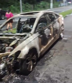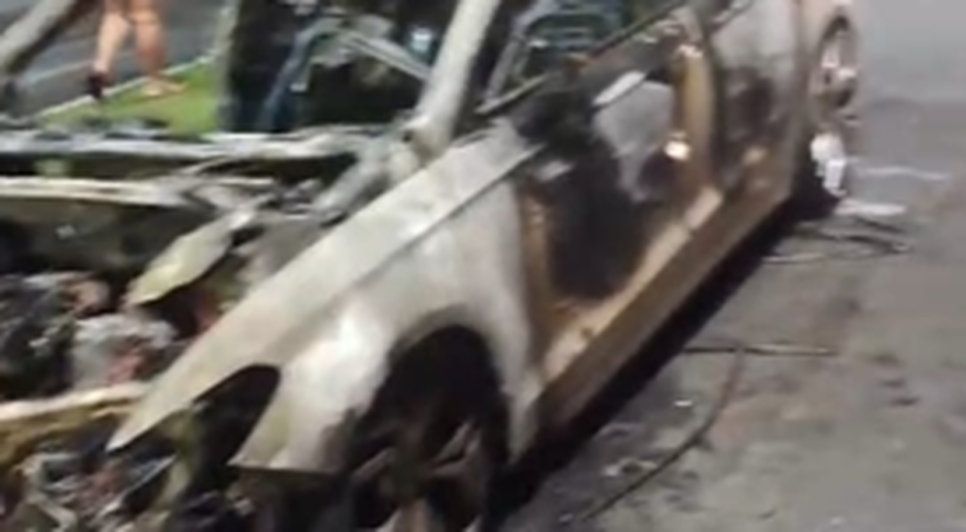 Imagens registradas por populares mostram o veículo, um Ford Fusion branco, completamente em chamas. O Corpo de Bombeiros foi acionado e conteve o fogo, mas o carro ficou totalmente destruído.