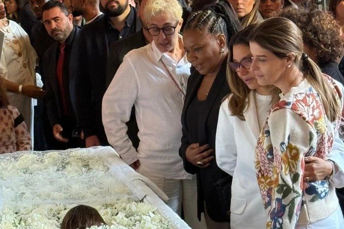 A primeira-dama chegou junto da ministra da Cultura, Margareth Menezes e da esposa do cantor Gilberto Gil, Flora. Visivelmente emocionada, Janja demonstrou solidariedade à família, abraçou a sobrinha de Preta Gil, Flor Gil e o João Paulo Demasi, ex-cunhado da artista e pai da Flor.