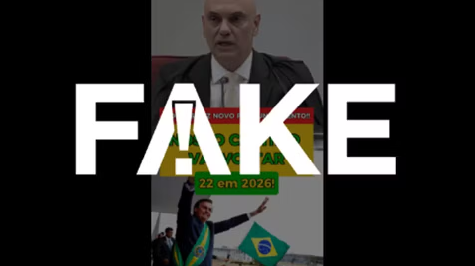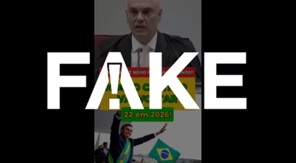 Na gravação, Moraes aparece diante de um microfone, como se estivesse fazendo um pronunciamento oficial. O áudio, artificialmente gerado, traz declarações forjadas como: “Errei com Jair Bolsonaro […] Eu declaro o meu apoio a Jair Bolsonaro para 2026”. A publicação enganosa viralizou principalmente no Instagram e no TikTok, ultrapassando 1,6 milhão de visualizações.