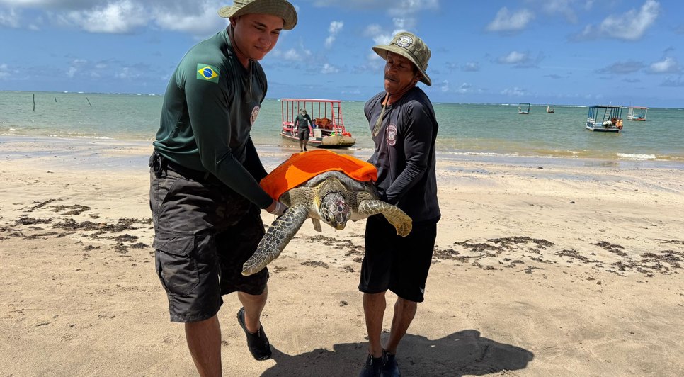 Na última sexta-feira (1), uma tartaruga marinha foi encontrada com ferimentos graves no crânio na Praia do Patacho, em Porto de Pedras. O animal foi resgatado por guardas ambientais e municipais de Porto de Pedras e encaminhado ao Instituto Biota de Conservação que prestou os primeiros socorros e o levou para tratamento intensivo no Centro de Reabilitação de Animais Marinhos (CRAM). De acordo com especialistas, a lesão pode ter sido causada por interação humana, como agressão intencional ou colisão com embarcação.
