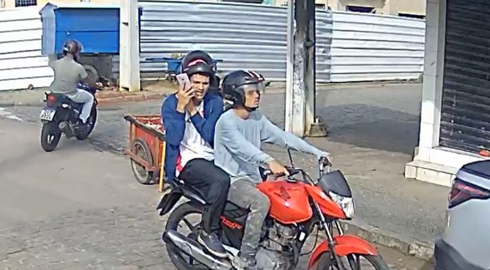 Nas imagens, dois homens em uma motocicleta vermelha, modelo CG Fan, aparecem aguardando a chegada da vítima. Quando o homem, vestindo camisa preta e bermuda colorida, se aproxima, o garupa desce da moto e dispara a queima-roupa.