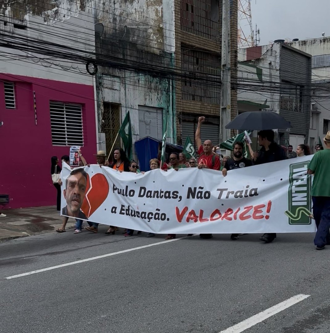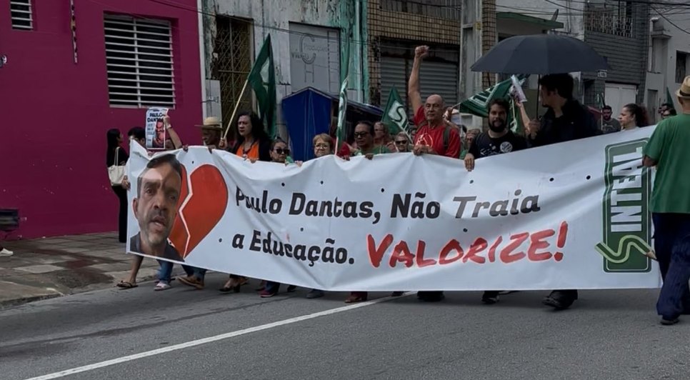 Os manifestantes carregavam faixas ao governador Paulo Dantas (MDB), cobrando diálogo, valorização profissional e o cumprimento de acordos firmados anteriormente. Entre os dizeres, estavam frases como: “Paulo Dantas, não traia a Educação, Valorize” e “Educação em greve”.