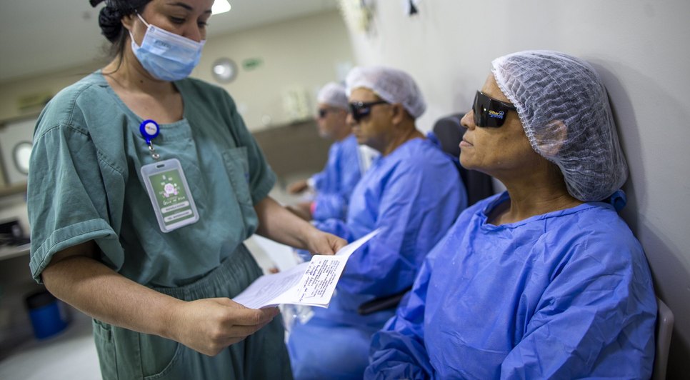 Após a triagem e o encaminhamento para o Hospital da Cidade, os usuários passam a contar com uma estrutura moderna, com profissionais capacidades e todo o cuidado necessário, desde exames pré-operatórios, passando pela cirurgia, até o pós-operatório, com entrega de óculos escuros e medicamentos.