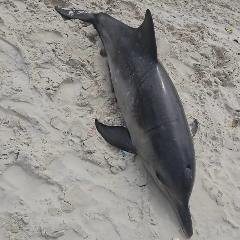 Boto-cinza, espécie de golfinho, é encontrado morto na Praia da Avenida