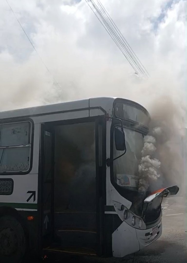 O fogo atingiu a parte da frente do veículo. As imagens mostram o ônibus parado na rua e com muita fumaça saindo pelas janelas. O Corpo de Bombeiros Militar de Alagoas (CBM/AL) foi acionado para controlar as chamas.
