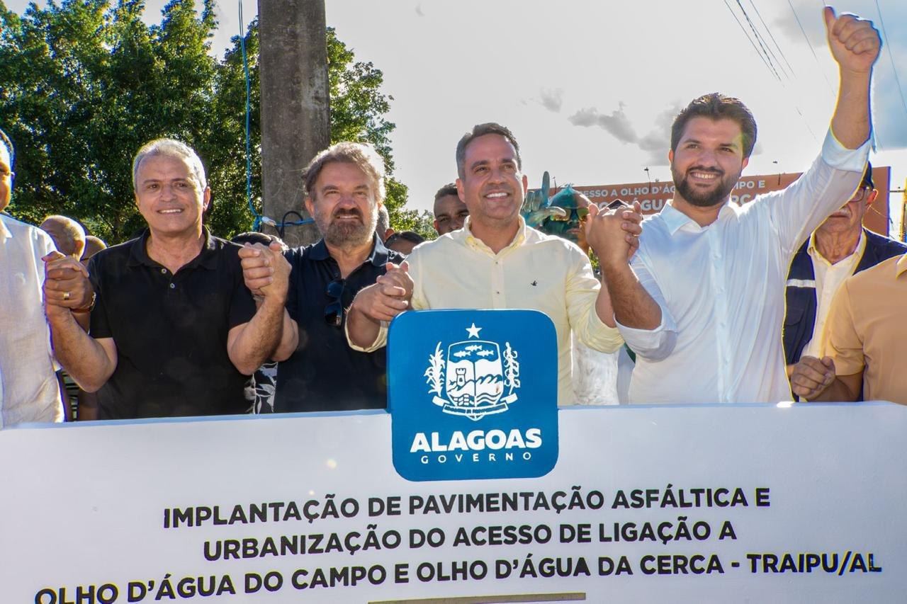 A primeira obra entregue foi a pavimentação asfáltica da estrada de acesso aos Povoados Olho D’água do Campo e Olho D’água da Cerca, na zona rural de Traipu. São mais de 3km de pavimentação asfáltica, com sistema de drenagem, ciclofaixas e sistema de sinalização vertical e horizontal. A obra, orçada em R$ 6.8 milhões, foi executada pelo Programa Alagoas de Ponta a Ponta, e era um sonho antigo da população das duas localidades. Duas novas praças também foram entregues no Povoado Olho D’Água do Campo e uma em Olho D’água da Cerca. Os novos espaços de lazer são amplos, com acessibilidade, parquinhos e academia ao ar livre.