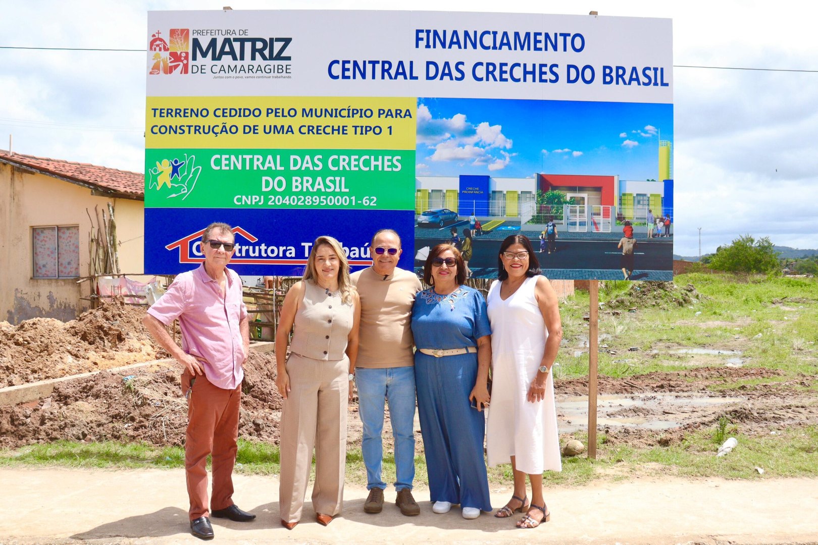A secretária de Educação, Ana Gomes, acompanhada da chefe de Gabinete da pasta, Darcir Aciole, e do secretário de Infraestrutura, Edson Lima, recebeu a diretora para o Nordeste da Central de Creches do Brasil, Dra. Amanda, em um momento simbólico que marcou o lançamento da pedra fundamental da nova unidade de ensino.