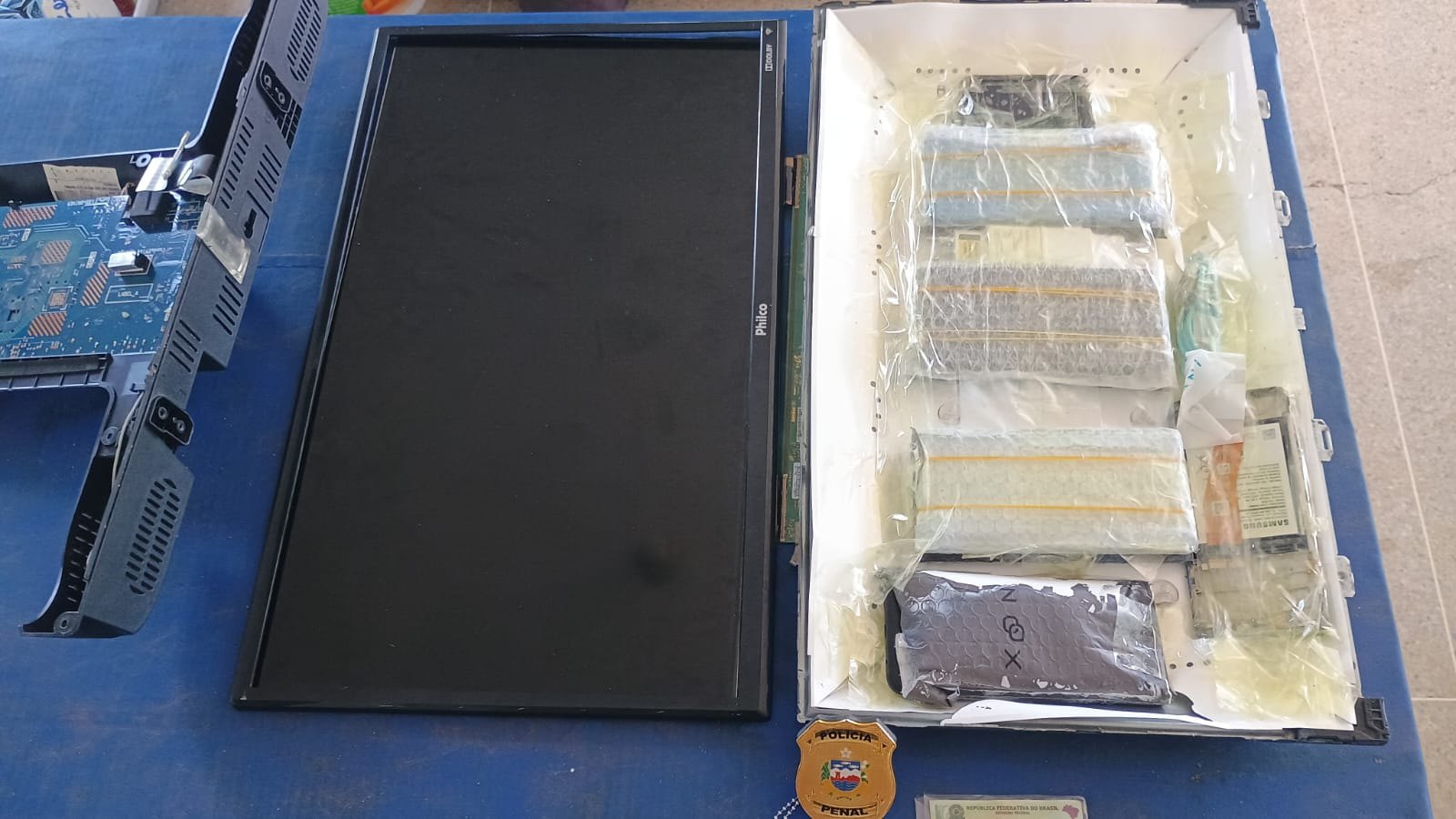 Durante a revista, policiais penais encontraram 11 celulares, quatro carregadores, um cabo de energia, um modem e dois isqueiros dentro dos equipamentos. Em um dos aparelhos de TV estavam sete celulares, dois carregadores e um modem. No outro, havia quatro celulares, dois carregadores, dois isqueiros e um cabo de carregador.