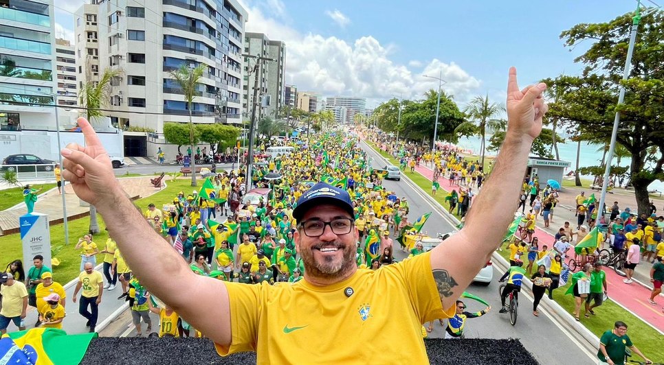 O vereador Leonardo Dias (PL) participou, na manhã deste domingo de Independência do Brasil (7), de um ato realizado na orla de Maceió em favor da anistia para perseguidos políticos.
