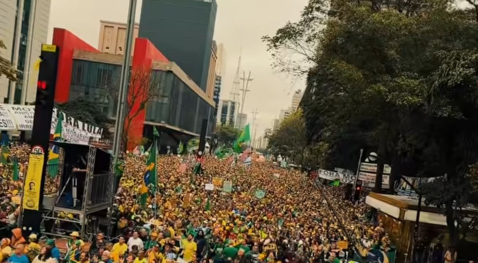 A contagem foi feita com base em imagens aéreas captadas por drones e analisadas com inteligência artificial, que estima a margem de erro em 12%. A mesma metodologia indicou que, no Rio de Janeiro, 42,7 mil pessoas participaram de manifestação semelhante pela manhã, na orla de Copacabana.