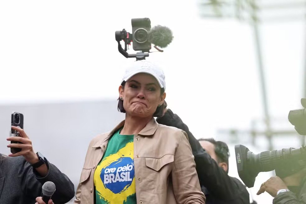 A ex-primeira dama, Michelle Bolsonaro, se emocionou em pronunciamento na manifestação do dia da Independência do Brasil. ''Eu nunca pensei que seria tão difícil estar aqui com vocês, mas eu creio, e tenho certeza que a gente vai passar por isso'', disse Michele. O público que acompanhava a manifestação prestou apoio a ex-primeira dama com um coro que dizia ''forças, Michelle''. A família Bolsonaro passa por um momento de tensão com o julgamento e prisão domiciliar do ex-presidente Jair Bolsonaro.