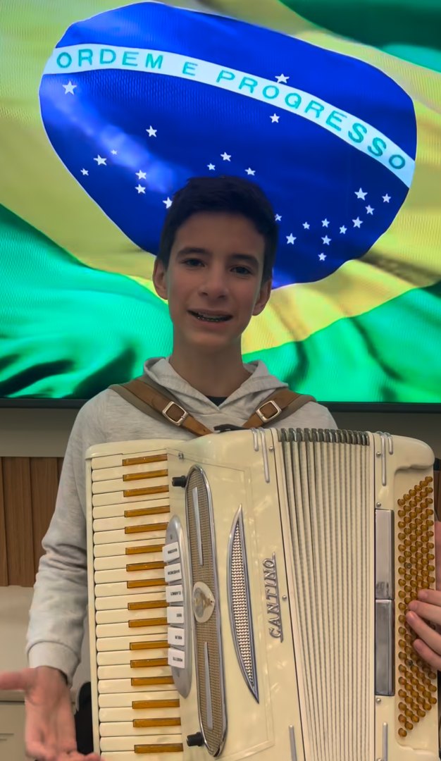 Com a bandeira do Brasil ao fundo e emoção em cada acorde, a apresentação foi recebida como um tributo à pátria. A homenagem encantou seguidores e reforçou o talento precoce do jovem, que vem se destacando com interpretações marcantes em suas redes.