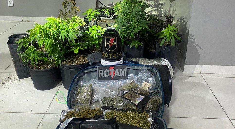 No quarto do imóvel foi encontrado uma estufa e pacotes lacrados contendo maconha, também foram apreendidos: 35g de haxixe; 30g de cocaína; 2300g de maconha e materiais como exaustor, selador a vácuo, embalagens plásticas, dois processadores de computador, seis balanças. No local, havia anda equipamentos como dois refletores pretos, um painel de LED, um aplicador de fira e um medidor de temperatura. Todo o material apreendido foi encaminhado à Central de Flagrantes da Policia Civil para a adoção dos procedimentos cabíveis.