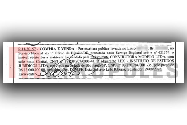 - R$ 6 milhões “a título de sinal”, por meio de transferências bancárias para a proprietária da casa e para os corretores de imóveis envolvidos na transação;