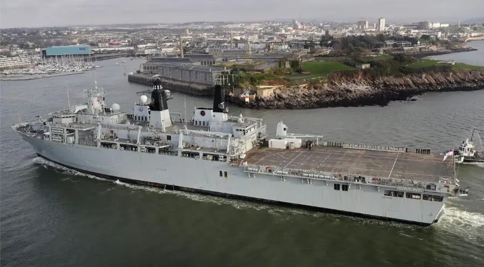 O HMS Bulwark, de 170 metros, pode atuar em missões anfíbias e humanitárias, transportando tropas, veículos, suprimentos e hospitais de campanha, reforçando a capacidade operacional e de resposta a emergências.