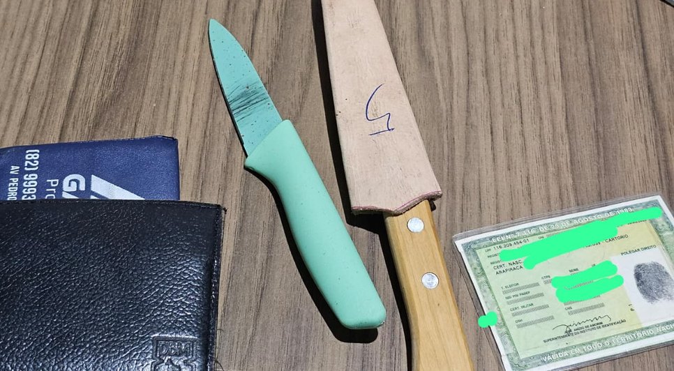 Durante a abordagem, os agentes identificaram que ele portava duas facas do tipo peixeira. Por apresentar comportamento agressivo e estar emocionalmente alterado, o suspeito foi algemado e encaminhado à Central de Polícia Civil de Arapiraca, onde permanece à disposição da Justiça.