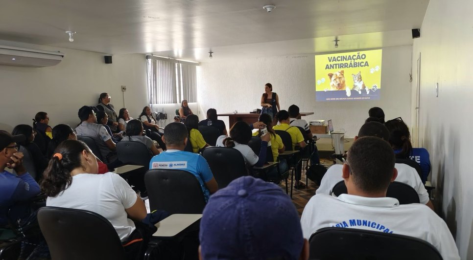 A Secretaria Municipal de Saúde (SMS) realizou nesta quarta-feira, 17, uma reunião de alinhamento com Agentes de Combate às Endemias (ACEs) que irão atuar na campanha de vacinação antirrábica em Penedo. O encontro teve como objetivo reforçar as orientações sobre o manuseio adequado das vacinas e os cuidados necessários com os animais durante o processo de imunização.
