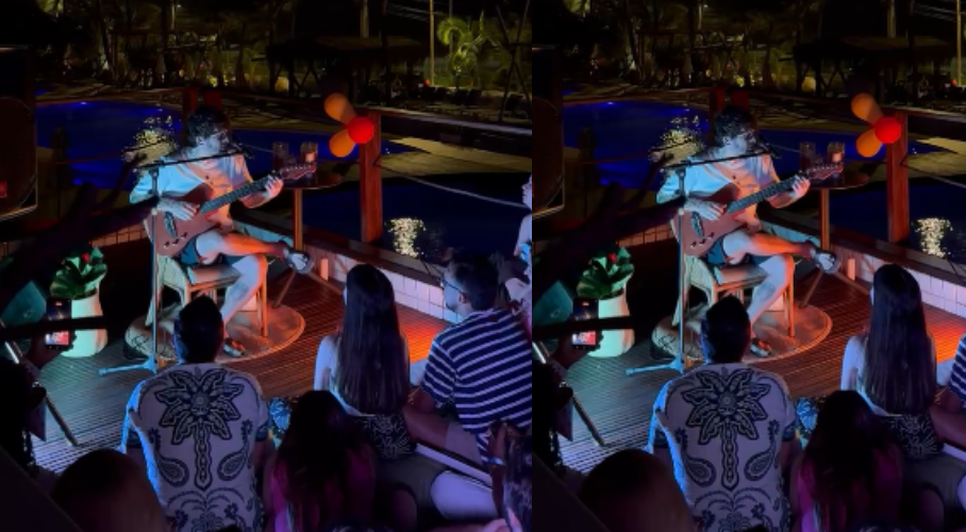 O cantor Saulo Fernandes proporcionou um momento especial para fãs nesta sexta-feira (19) em Maceió, com um pocket show intimista no hotel Ritz Lagoa da Anta. Sentado à beira da piscina e cercado por alguns admiradores, o artista interpretou a música Minha Sereia, do cantor e compositor alagoano Carlos Moura.