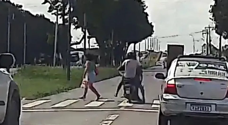 O motociclista também caiu após a colisão, mas conseguiu se levantar rapidamente. A cena chamou a atenção de quem passava pelo local e gerou revolta entre os pedestres que testemunharam o atropelamento.