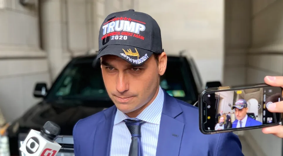 Eduardo Bolsonaro reside nos EUA desde fevereiro e afirma que não pode voltar ao país por ser alvo de “perseguição política”. O parlamentar chegou a se licenciar, mas o período venceu e ele não pode solicitar um novo afastamento formal.