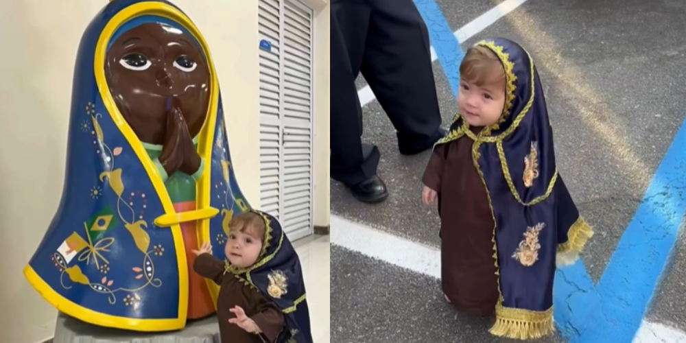 As fotos viralizaram e multiplicaram os elogios. “Fofa demais”, escreveu mais um internauta, resumindo o sentimento de muitos que se sensibilizaram com a homenagem da pequena à padroeira do Brasil.