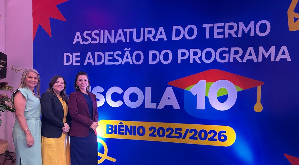 A prefeita Rita do Araçá participou, nessa sexta-feira (26), em Maceió, da cerimônia de assinatura do termo de adesão ao Programa Escola 10, promovido pelo Governo de Alagoas. O ato contou também com a presença da secretária municipal de Educação, Márcia Gerônimo, e da vice-secretária, Márcia Freitas. O município garantiu sua participação no programa para o biênio 2025-2026.