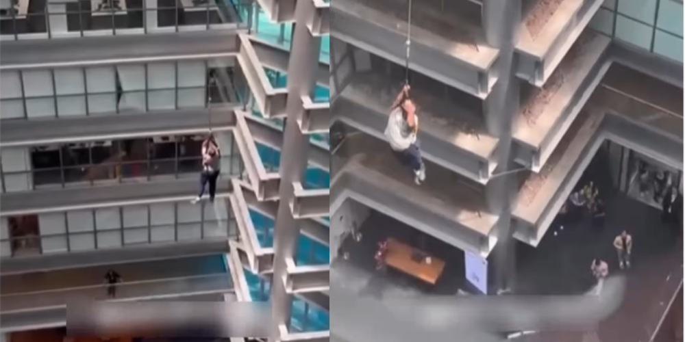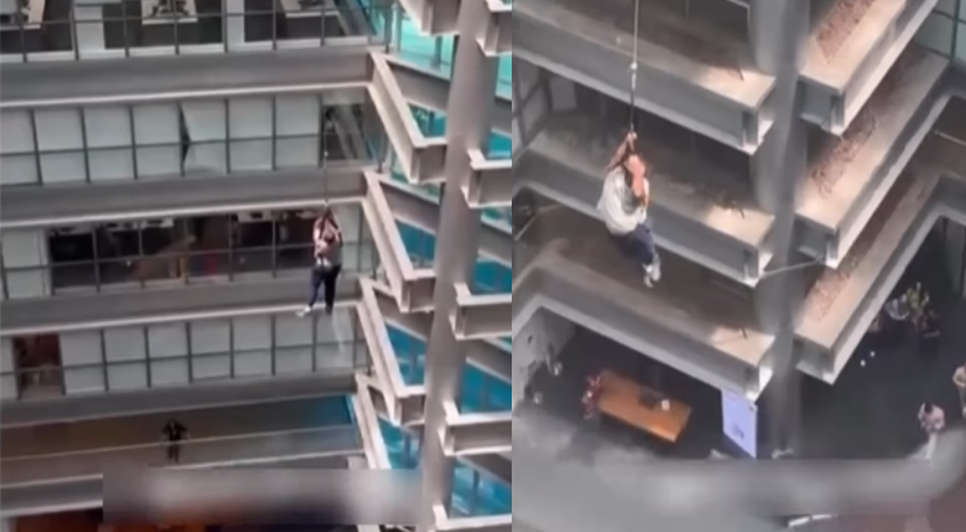 De acordo com testemunhas, o homem ainda ficou suspenso por cerca de 20 minutos preso a uma corda de segurança. No entanto, o equipamento não suportou e ele despencou até o hall da recepção, no térreo, morrendo na hora.