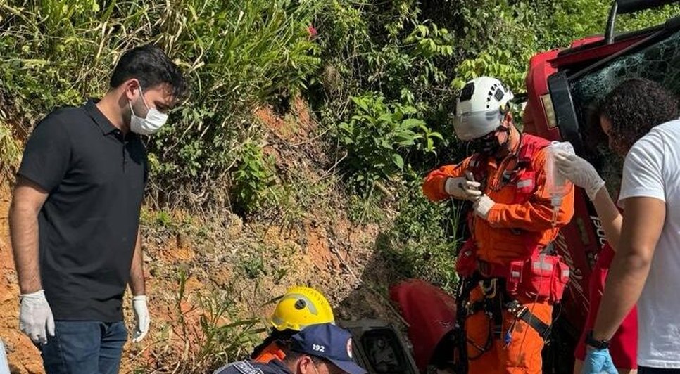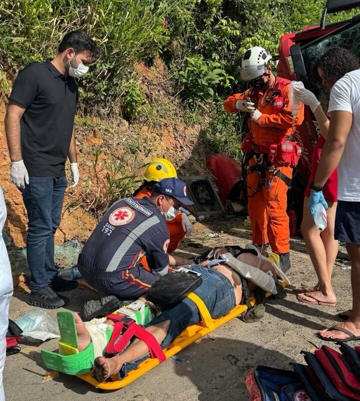 De acordo com o Serviço de Atendimento Móvel de Urgência (Samu), o condutor sofreu escoriações no tórax e nos braços, além de fratura no braço esquerdo e fratura exposta na perna direita. Apesar da gravidade, ele permaneceu consciente e orientado durante todo o atendimento.