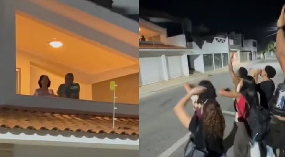 Surpresa, a idosa apareceu na sacada com um largo sorriso, batendo palmas e enviando beijos aos estudantes, enquanto os vizinhos registravam o momento. O vídeo, publicado nas redes sociais, já ultrapassou 1,7 milhão de visualizações e 170 mil curtidas, recebendo uma enxurrada de comentários comovidos. “Chorei! Ver pessoas com empatia assim enche o coração de esperança”, escreveu uma internauta.