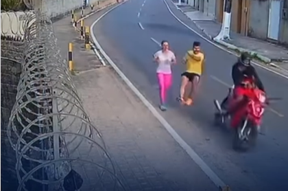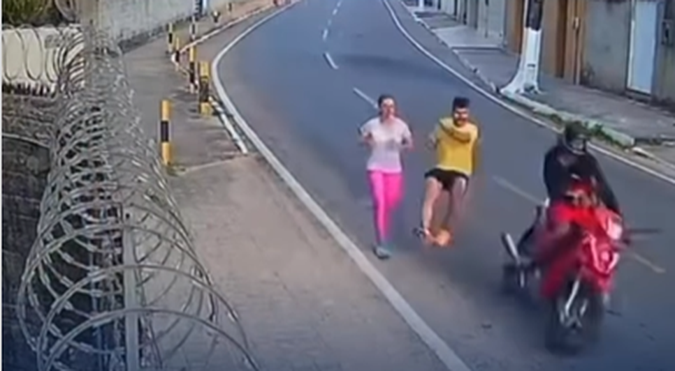 Um corredor foi atropelado por uma motocicleta enquanto praticava atividade física em uma rua de Cascavel, nesse domingo (12). Câmeras de segurança registraram o momento exato em que o homem é atingido e arremessado ao chão, caindo no asfalto. Pessoas que passavam pelo local correram para socorrê-lo logo após o impacto.