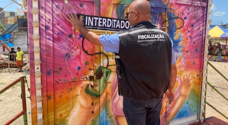 A Secretaria Municipal de Segurança Cidadã (Semsc), por meio da Fiscalização de Posturas, interditou, nesta quarta-feira (15), um parque de diversões que funcionava sem alvará na parte alta de Maceió. Os responsáveis foram notificados no dia 10 de outubro, mas acompanhados com as atividades.