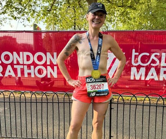 A corredora britânica Louise Bernadette Butcher tem emocionado e inspirado pessoas ao redor do mundo com sua história de coragem e superação. Após enfrentar um câncer de mama lobular e passar por uma dupla mastectomia, ela decidiu participar da Maratona de Londres, correndo sem blusa para mostrar que “a sobrevivência não é perfeita”. Sua atitude simbólica e poderosa chamou atenção nas redes sociais e durante a prova, onde completou os 42,195 km com determinação e orgulho.