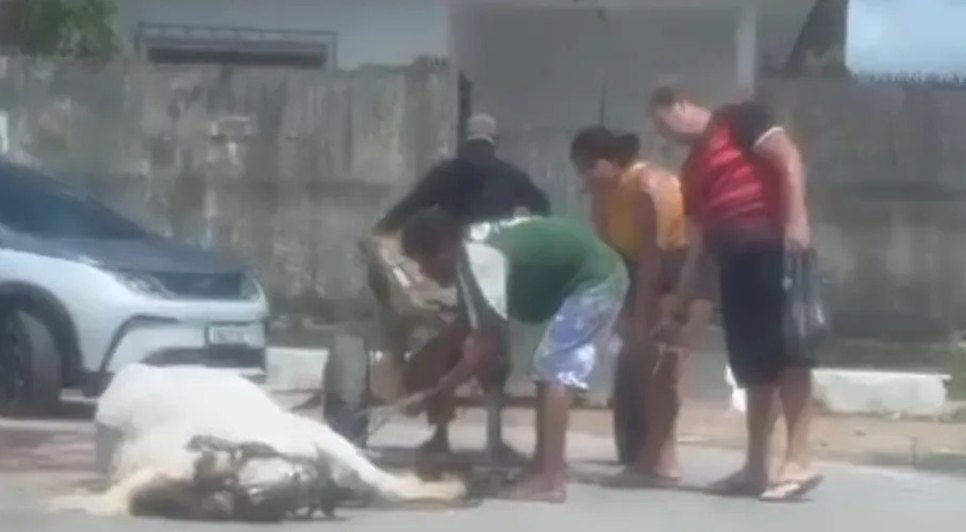 Um vídeo de maus-tratos a animais revoltou a população do Benedito Bentes, em Maceió, durante a tarde da terça-feira (21). Nas imagens registradas por moradores, o animal está caído, exausto, enquanto é chutado por um homem.