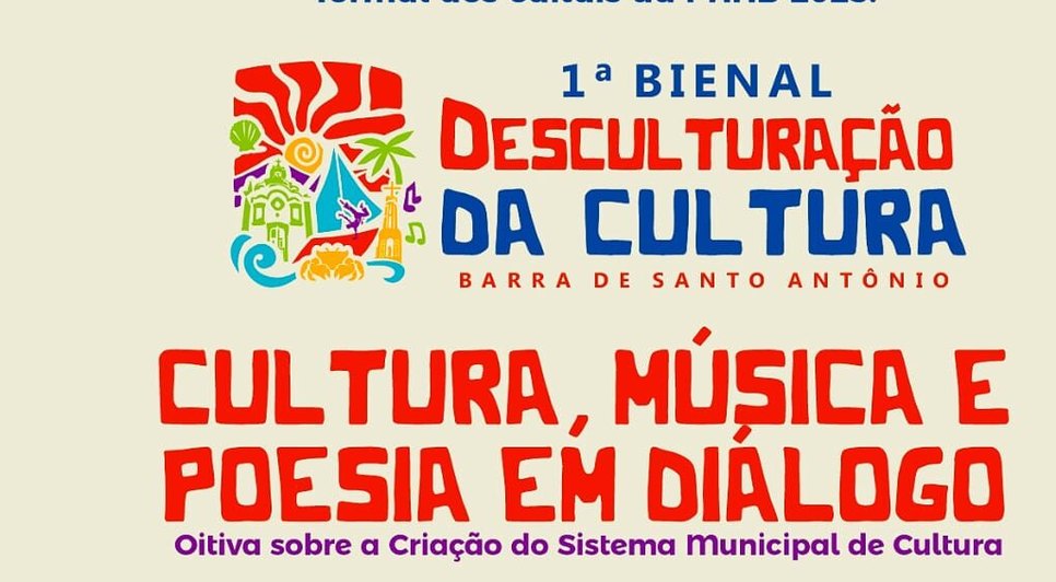 Com o objetivo de fortalecer a identidade local e democratizar o acesso à produção artística, a Prefeitura de Barra de Santo Antônio realiza, a partir da próxima terça-feira (4), a 1ª Bienal “Desculturação da Cultura”, promovida pela Secretaria Municipal de Cultura. O evento, que integra o calendário do Dia Nacional da Cultura (5 de novembro), segue até o dia 9 e propõe uma imersão nas manifestações populares, urbanas e tradicionais que formam a diversidade cultural barrense.