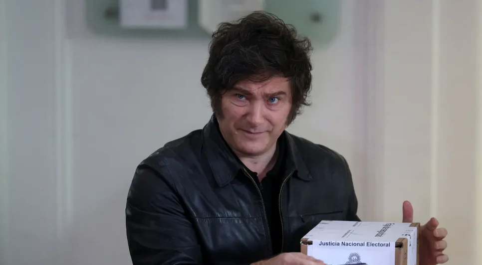 Milei votou na manhã deste domingo no bairro de classe média de Almagro, em Buenos Aires, e acenou para o público, mas não deu nenhuma declaração.