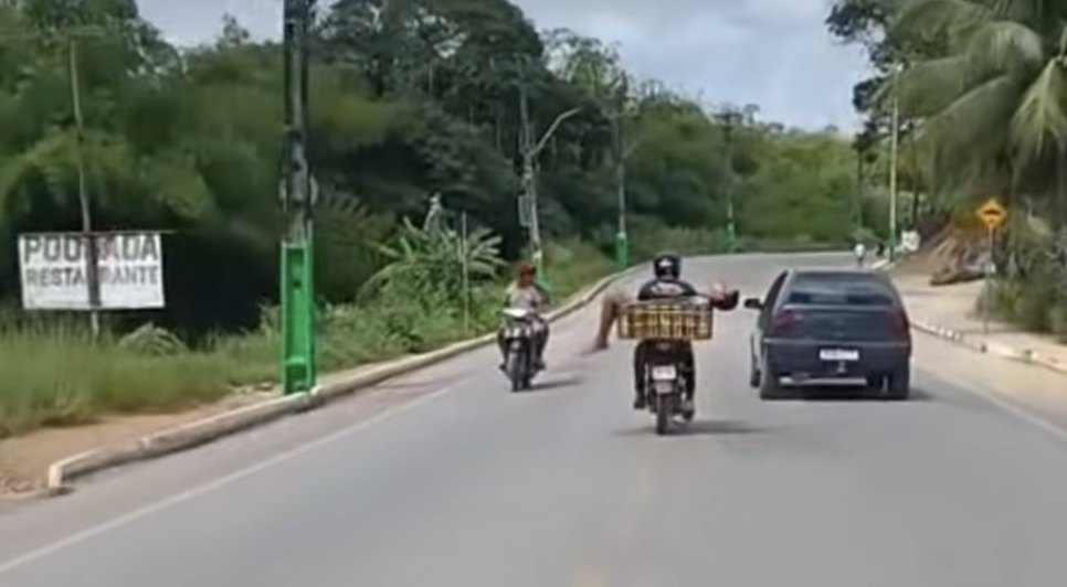 Um vídeo que mostra um motociclista transportando um homem visivelmente embriagado na garupa viralizou nas redes sociais. A cena inusitada foi registrada em Joaquim Gomes, no interior de Alagoas.