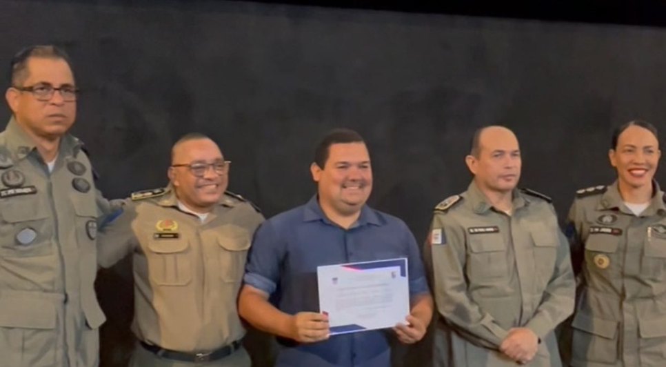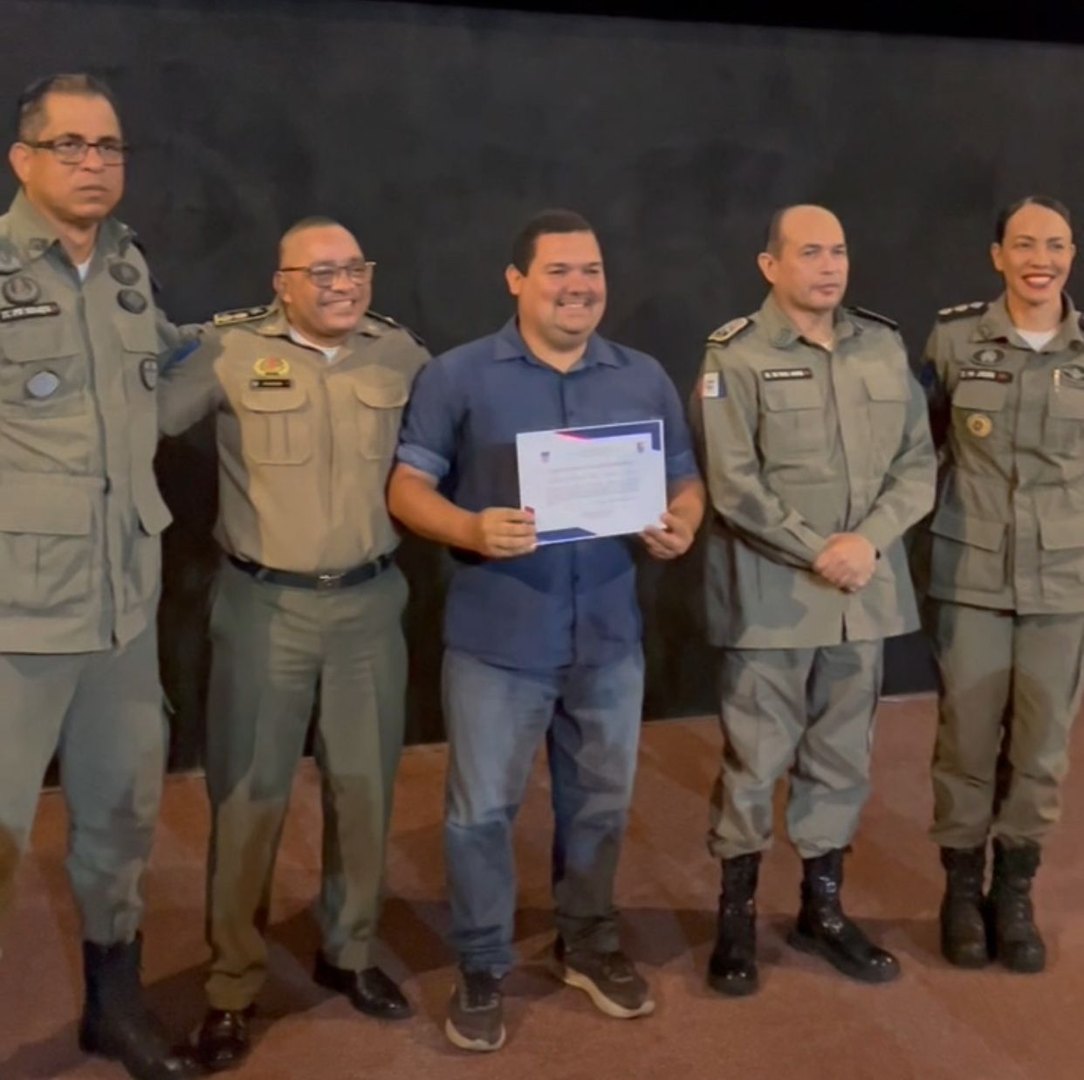 A homenagem foi entregue pelas principais autoridades da segurança pública do estado: o Comandante-Geral da PM, Coronel Paulo Amorim, o Comandante do 5º BPM, Coronel Luciano, o Comandante do CPRM, Coronel Hiraque, e a Coronel Josiene, responsável pela comunicação da PMAL.