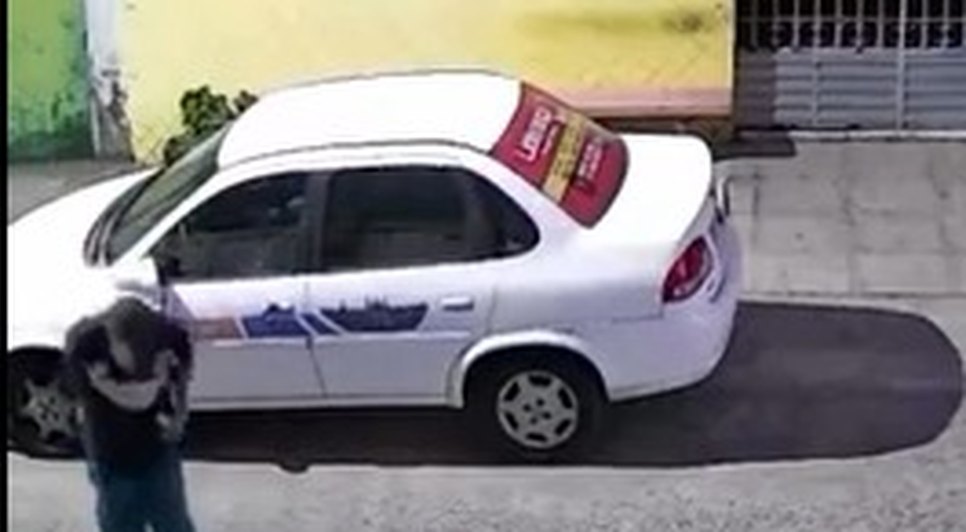 Nas imagens, o suspeito aparece circulando ao redor do veículo por alguns segundos, aparentemente à procura de algo que pudesse usar no crime. Em seguida, ele pega uma pedra e utiliza o objeto para quebrar o vidro do carro.