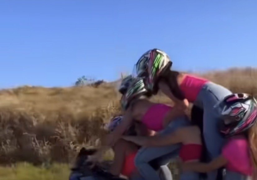 Um vídeo que circula nas redes sociais tem chamado muita atenção. As imagens mostram cinco mulheres em cima de uma única motocicleta, algo totalmente fora das regras de trânsito e que coloca qualquer um em risco.